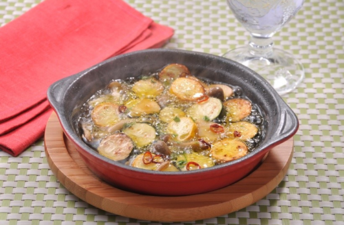 | 3 | 器にオリーブ油とニンニクを入れてゆっくり火にかける。 | |